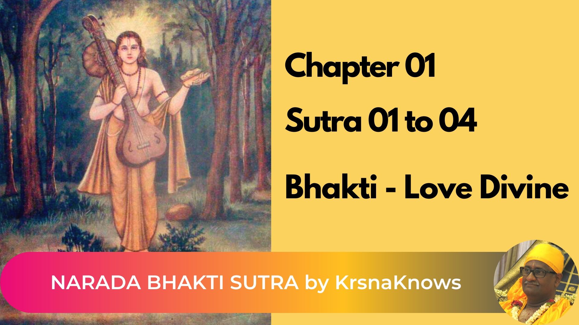 In this discourse, Our Master expounds Narada Bhakti Sutra Chapter 01 – Bhakti – Love Divine – Section 1 from Sutra 01 to 04.